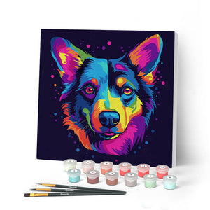 Mini Malen nach Zahlen mit Rahmen - Neon Hund Abstrakt Pop Art