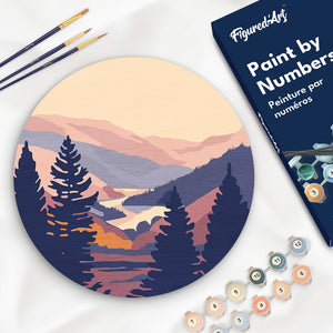 Malen nach Zahlen auf Holzscheibe - Majestätischer Hirsch und Landschaft