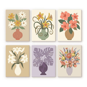 • Mini Malen nach Zahlen 15x20 cm (6 Stück) - Blumenvasen