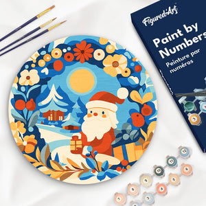 • Malen nach Zahlen auf Holzscheibe - Weihnachtsmann und Blumen