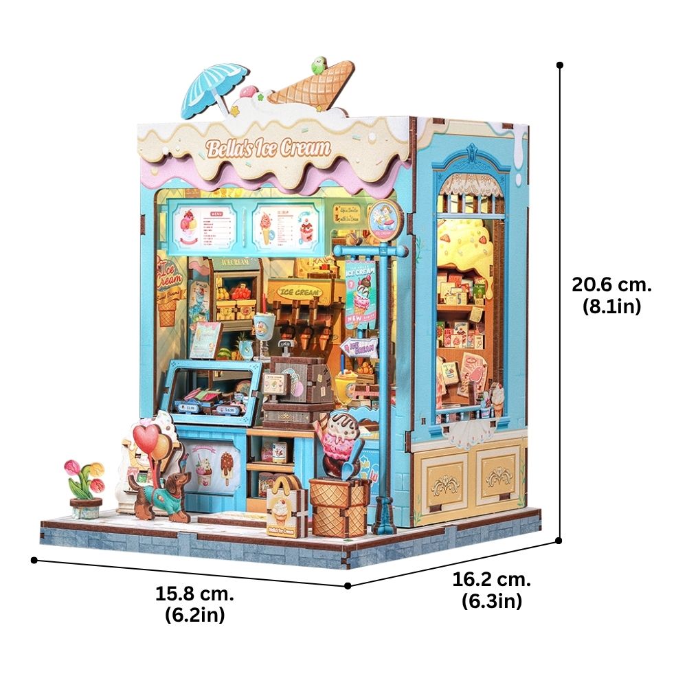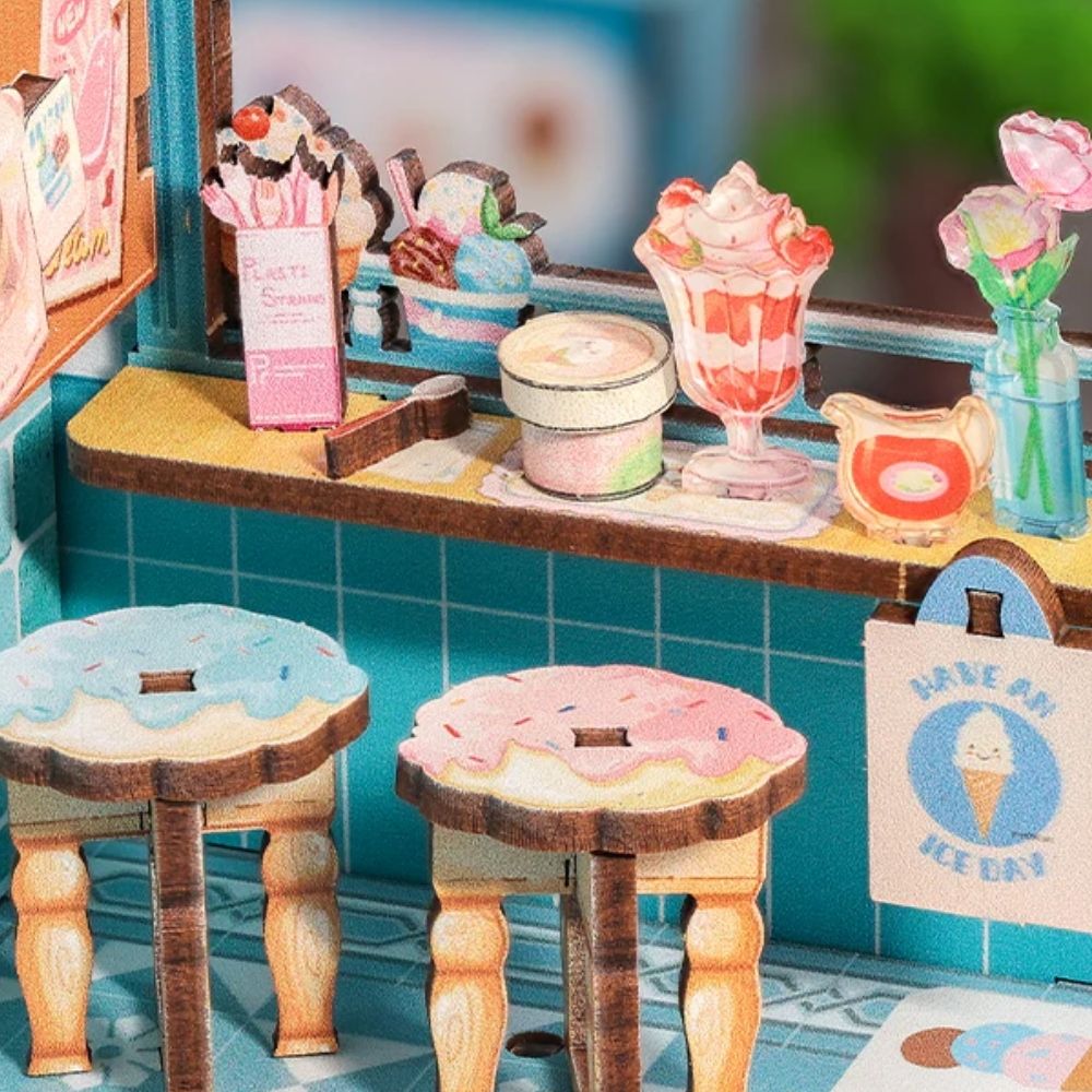 Bella's Eisdiele bringt die Freude eines sonnendurchfluteten Sommertages in Miniaturform. An einer hellen Straßenecke gelegen, fängt dieses kleine Geschäft die Süße unbeschwerter Nachmittage ein, in denen bunte Eistüten, kühle Leckereien und fröhliches Geplauder Momente schaffen, die noch lange nach Sonnenuntergang nachklingen. Jedes Detail wirkt wie eine kleine Feier, eine Einladung, die einfachen Freuden des Sommers zu genießen, einen winzigen Löffel nach dem anderen. Dieses liebevoll gestaltete Diorama hält die sommerliche Leichtigkeit fest.