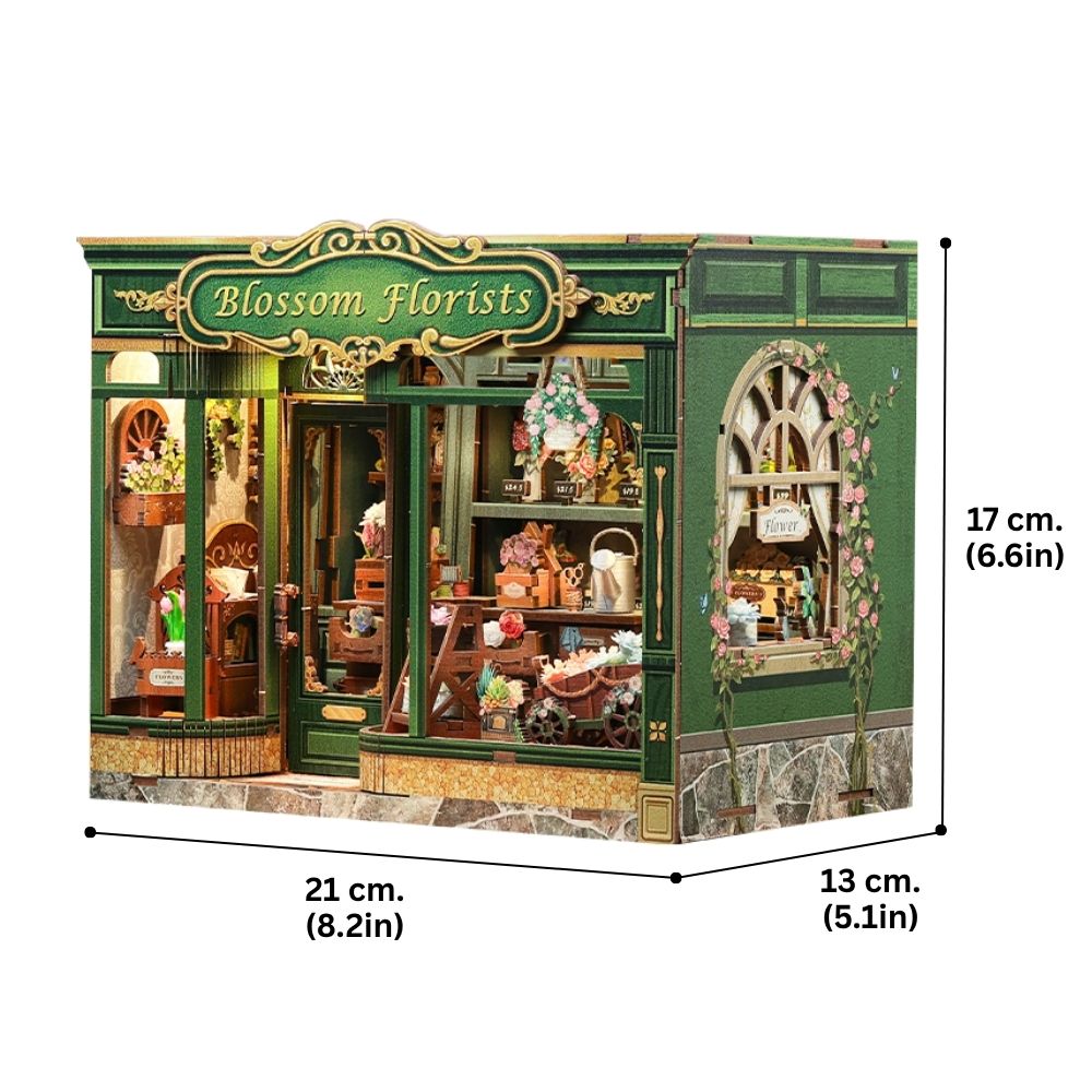 Blumenladen Blossom ist ein bezaubernder Miniatur-Blumenladen voller Charme und Farbe. Schon beim ersten Blick ins Innere begrüßen winzige Sträuße, zarte Blütenblätter und liebevoll arrangierte Dekorationen, die Schönheit der Arbeit eines echten Floristen in voller Blüte einfangen. Jede Ecke steckt voller fröhlicher Details, von handgefertigten Vasen bis hin zu üppigem Grün und schafft eine warme, aufmunternde Atmosphäre. Dieses entzückende Diorama feiert die Freude an frischen Blumen und bringt einen Hauch natürlicher Eleganz und Glück in jeden Raum.