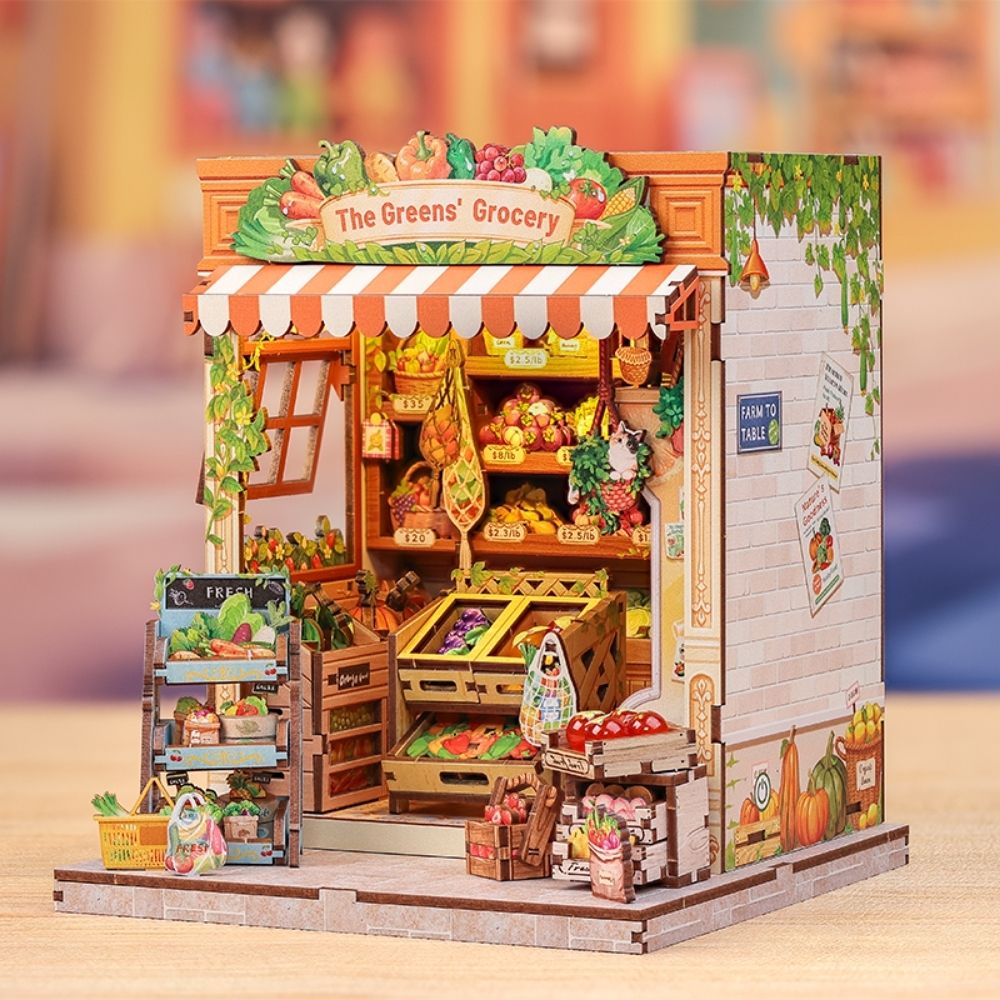 Kleiner Obstladen empfängt Sie mit dem sanften Glanz des frühen Morgens, während das gestreifte Markisendach sanft über einer charmanten Backsteinfassade tanzt. Die Luft trägt die Frische eben gepflückter Früchte und Gemüse und schafft eine Szene voller Wärme und einfacher Freude. In diesem Miniaturmarkt wirkt jedes kleine Detail lebendig, als würde jedes Element leise daran erinnern, dass die Schönheit des Alltags oft in kleinen, gewöhnlichen Momenten liegt. Beim Zusammenbauen dieses friedlichen kleinen Ladens betreten Sie eine Welt ohne Eile, nur sanftes Licht, ruhige Aufgaben und die stille Zufriedenheit, einen winzigen, fröhlichen Ort mit eigenen Händen zum Leben zu erwecken. Dieses liebevoll gestaltete Diorama fängt diese beruhigende Atmosphäre perfekt ein.