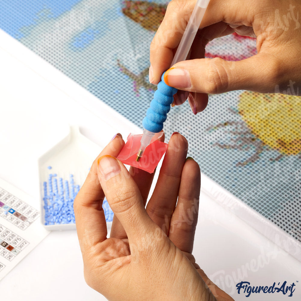 Diamond Painting ist eine kreative Methode Gemälde zu erstellen, indem Sie bunte Glitzersteinchen auf ein verpixeltes Bild aufkleben. Das Endresultat ist ein glitzerndes Gemälde Ihres ausgewählten Motivs.