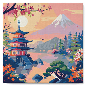 Mini Malen nach Zahlen mit Rahmen - Pagode und Mount Fuji