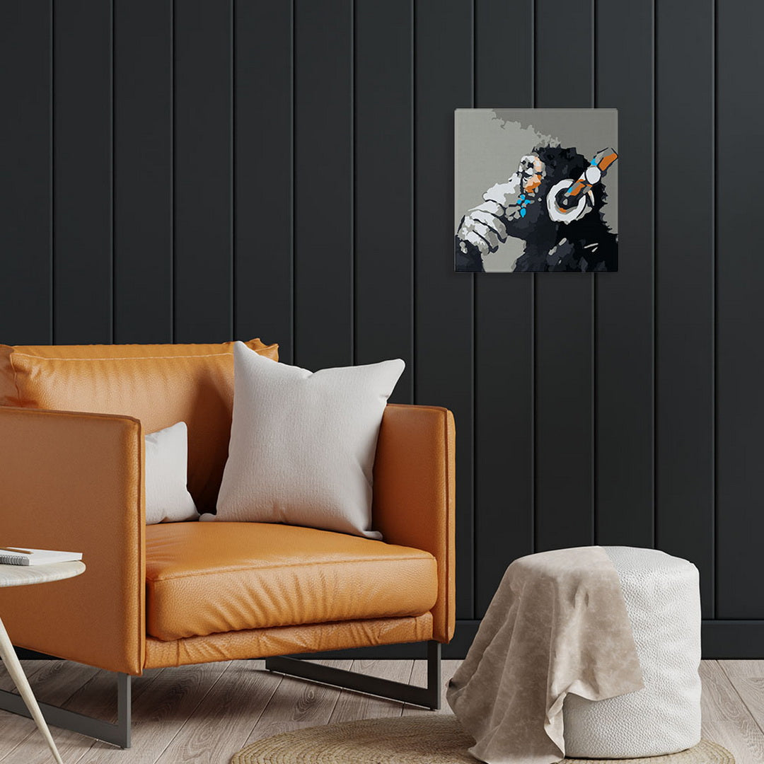 Mini Malen nach Zahlen mit Rahmen 20x20cm - Affe mit Kopfhörer