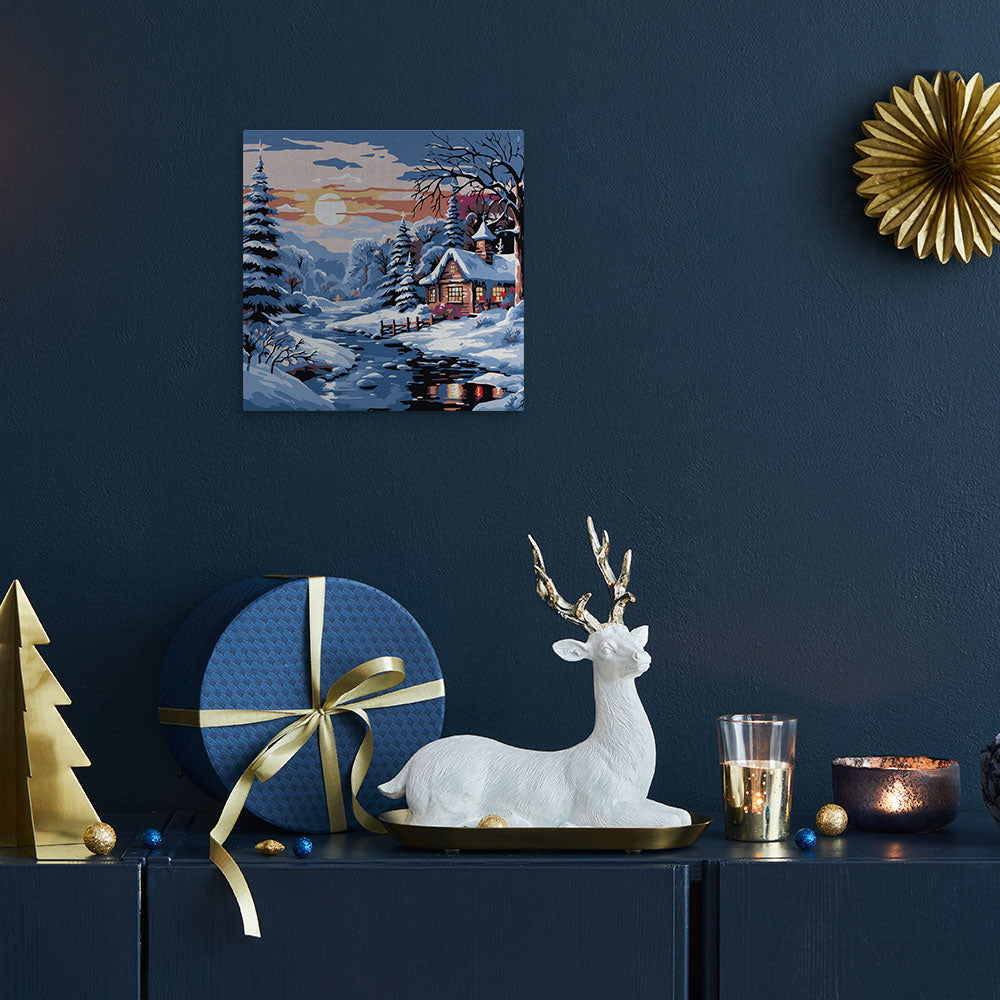 Mini Malen nach Zahlen mit Rahmen - Liebliches Winterhäuschen