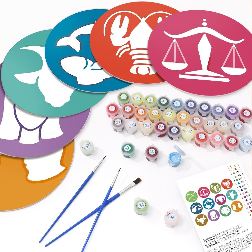 Malen nach Zahlen 20 cm Tischsets (12 Stück) - Tierkreiszeichen Serie 1