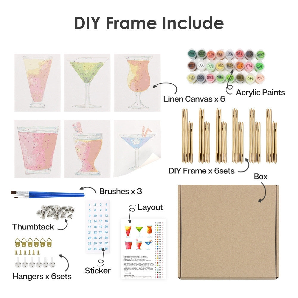 Malen nach Zahlen – 6-Leinwand-Set | Bunte Cocktails Figured'Art