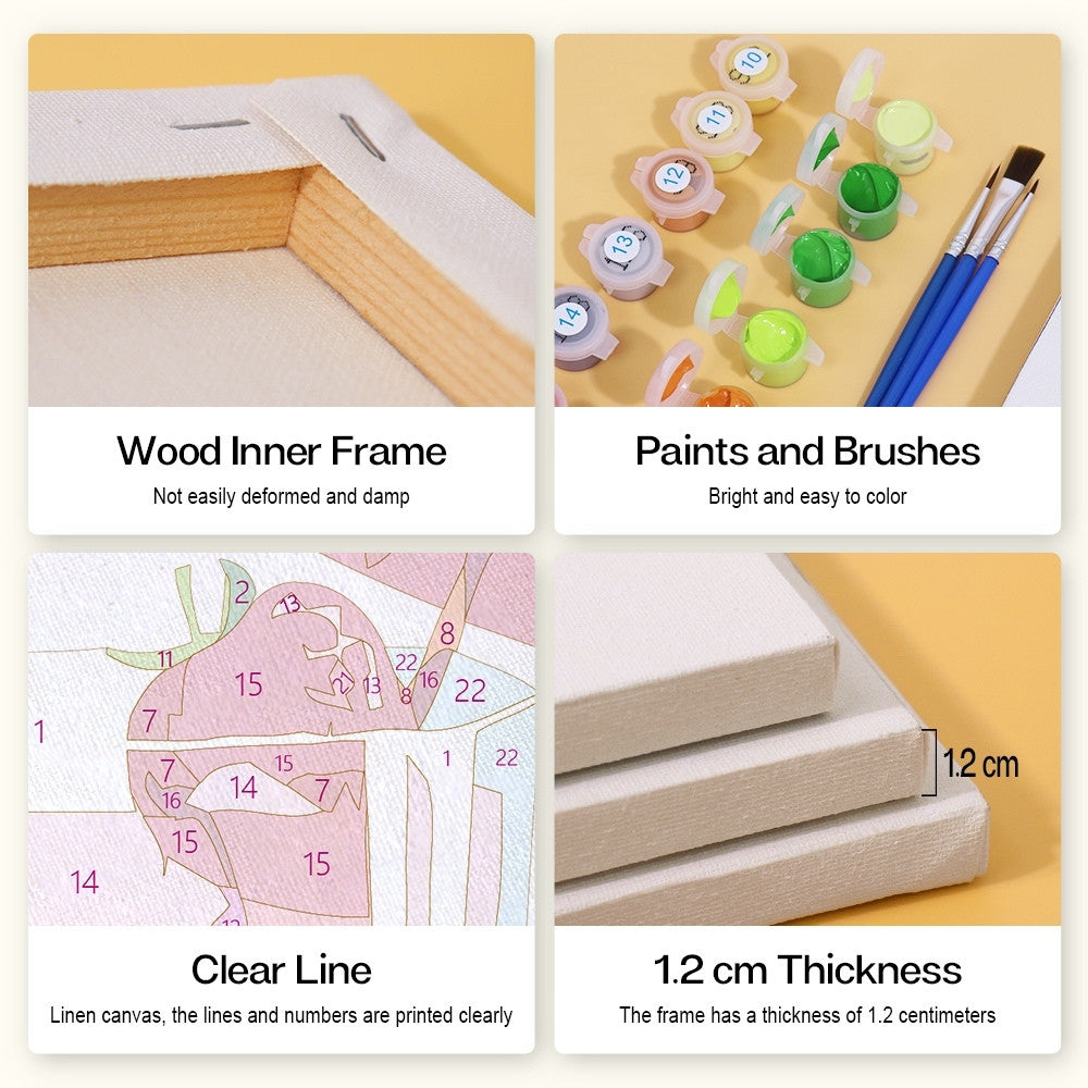 Entfesseln Sie Ihre Kreativität mit dem Figured'Art Malen nach Zahlen Set, bestehend aus kleine nummerierte Leinwände aus Leinen. Dieses entspannende Malen nach Zahlen für Erwachsene Erlebnis ist für jeden zugänglich, ideal, um Ihre künstlerische Seite auszuleben, Ihr Zuhause zu dekorieren oder als kreatives Geschenk.