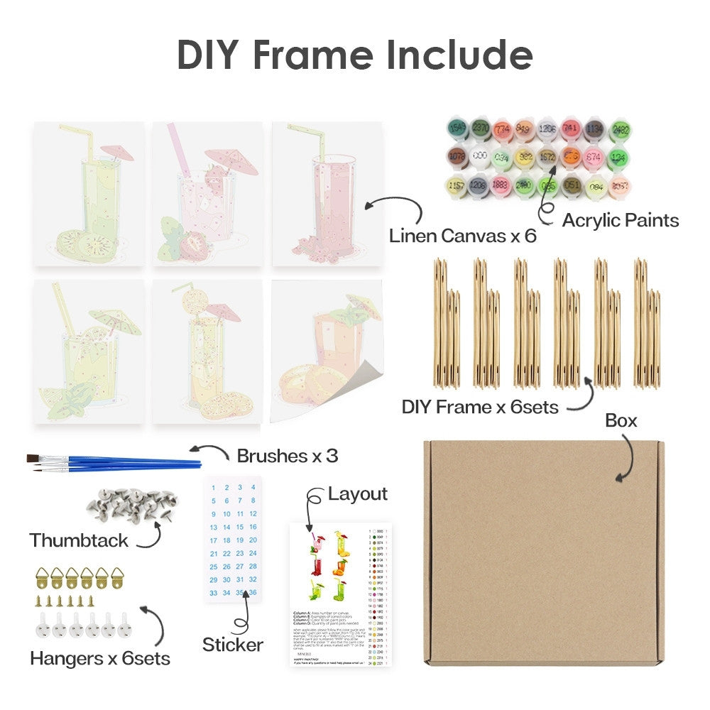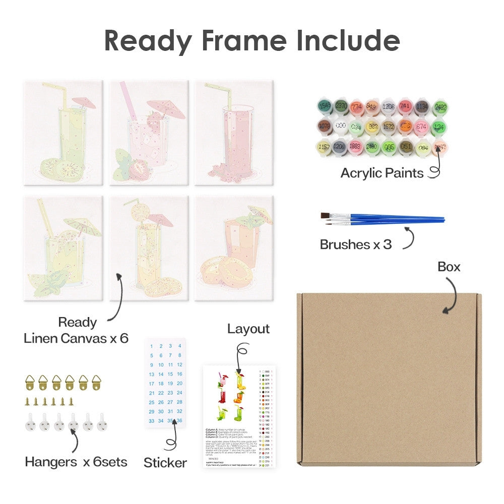 Malen nach Zahlen – 6-Leinwand-Set | Frische Fruchtsäfte Figured'Art
