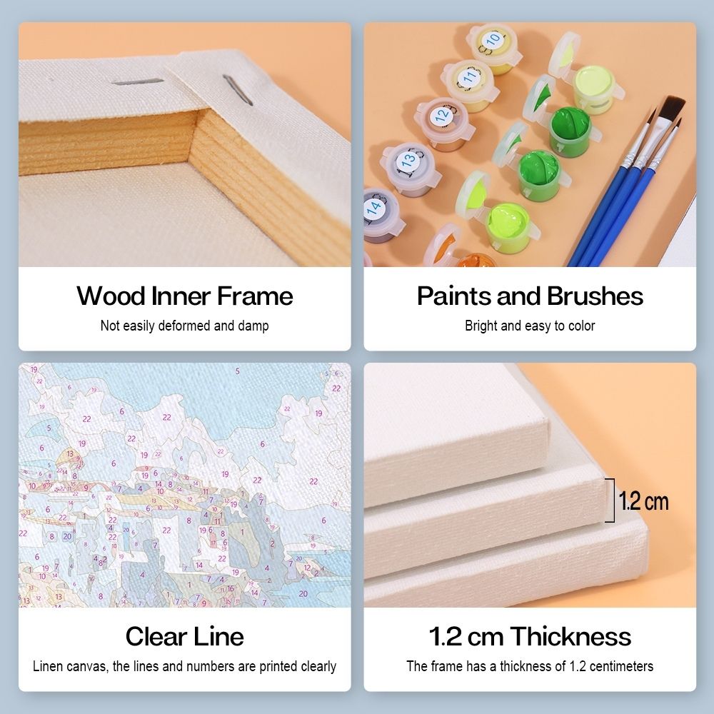 2) Sie erhalten ein komplettes Set mit Leinwand, Pinsel und Farben.