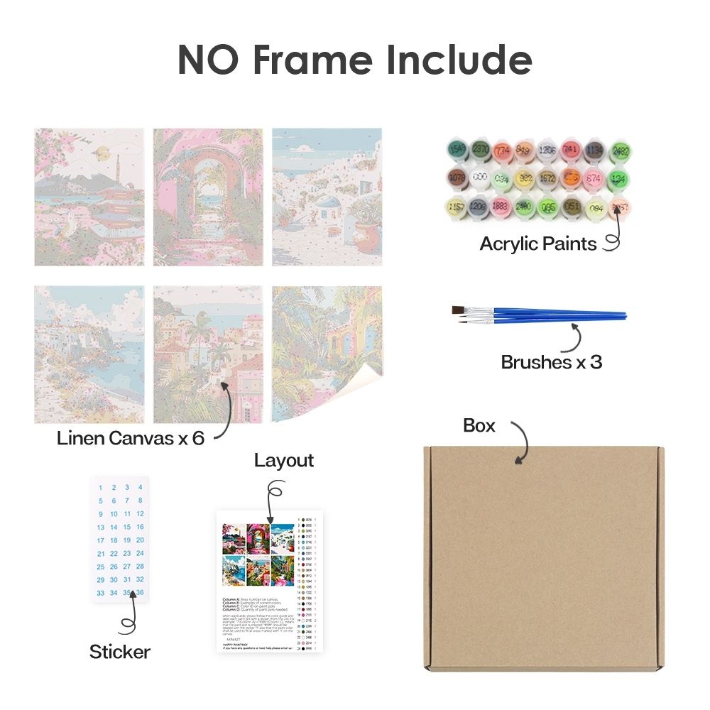 Malen nach Zahlen – 6-Leinwand-Set | Mediterrane Szenen Figured'Art