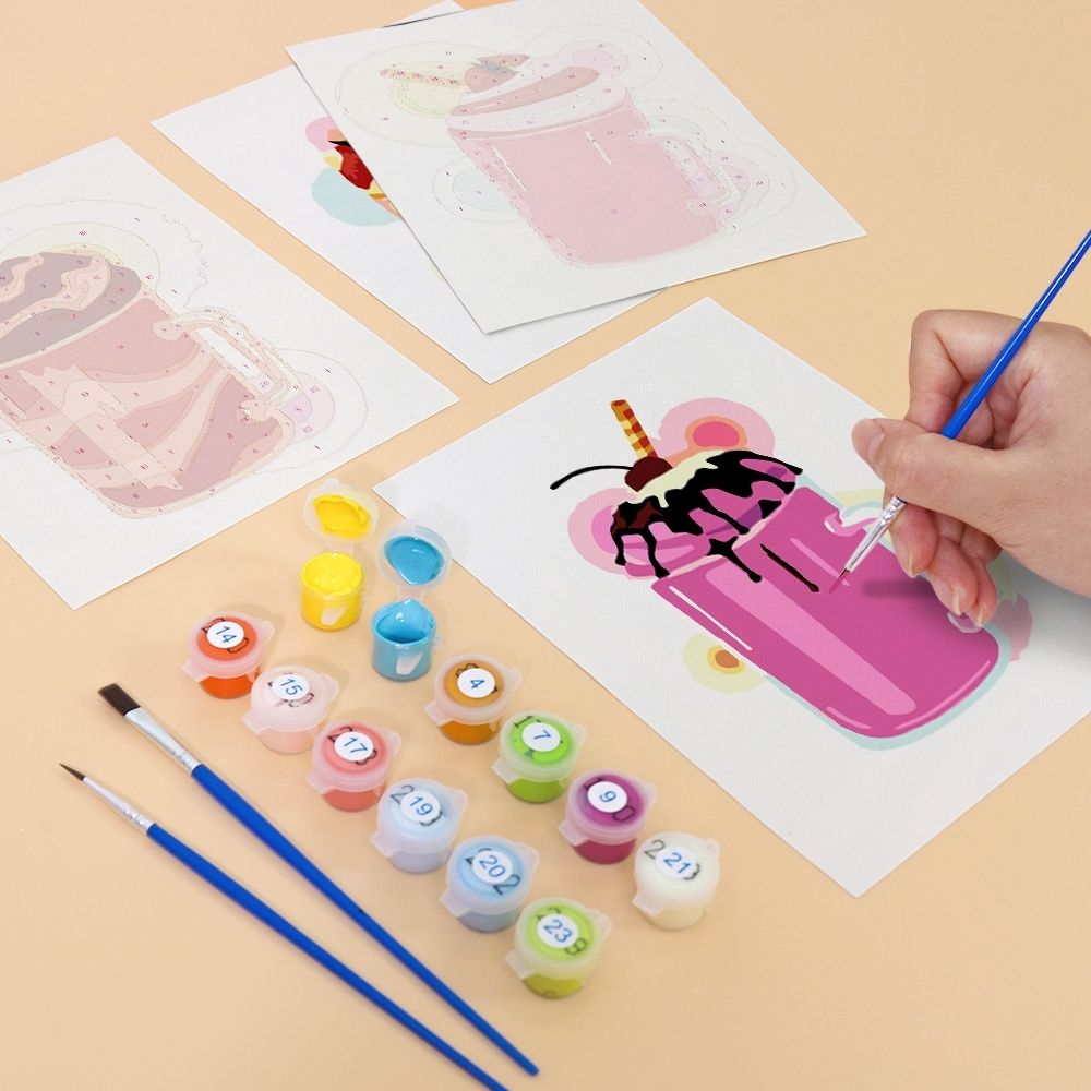 Mini Malen nach Zahlen 15x20cm (6 Stück) - Milchshakes
