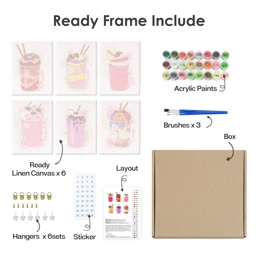Malen nach Zahlen – 6-Leinwand-Set | Milchshakes Figured'Art