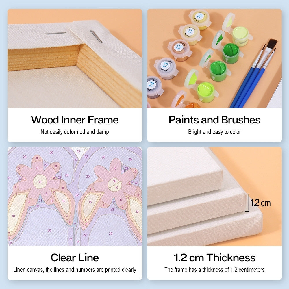 Entfesseln Sie Ihre Kreativität mit dem Figured'Art Malen nach Zahlen Set, bestehend aus kleine nummerierte Leinwände aus Leinen. Dieses entspannende Malen nach Zahlen für Erwachsene Erlebnis ist für jeden zugänglich, ideal, um Ihre künstlerische Seite auszuleben, Ihr Zuhause zu dekorieren oder als kreatives Geschenk.
