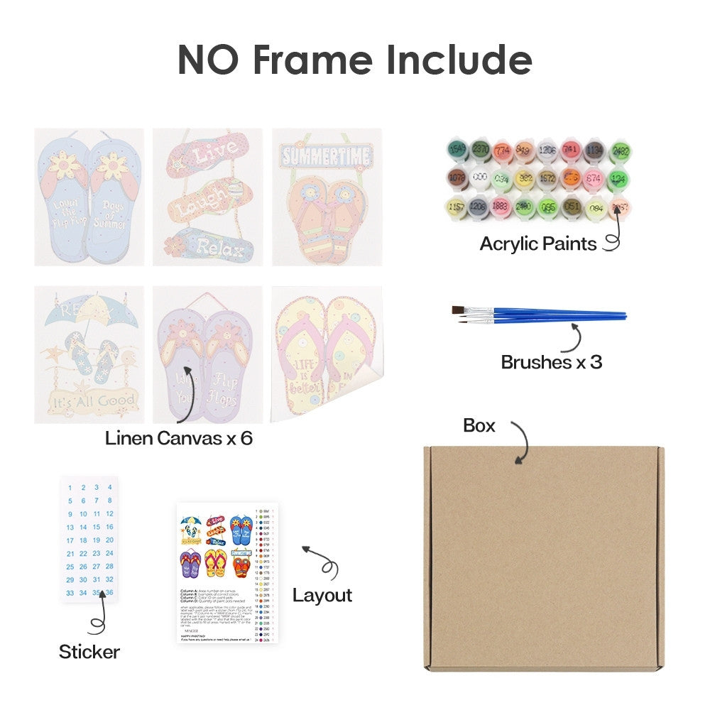 Malen nach Zahlen – 6-Leinwand-Set | Sommer-Flip-Flop-Schilder Figured'Art