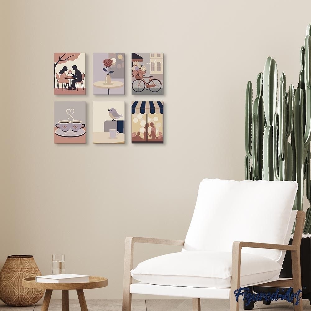 Mini Malen nach Zahlen 15x20 cm (6 Stück) - Café Romanze Figured'Art