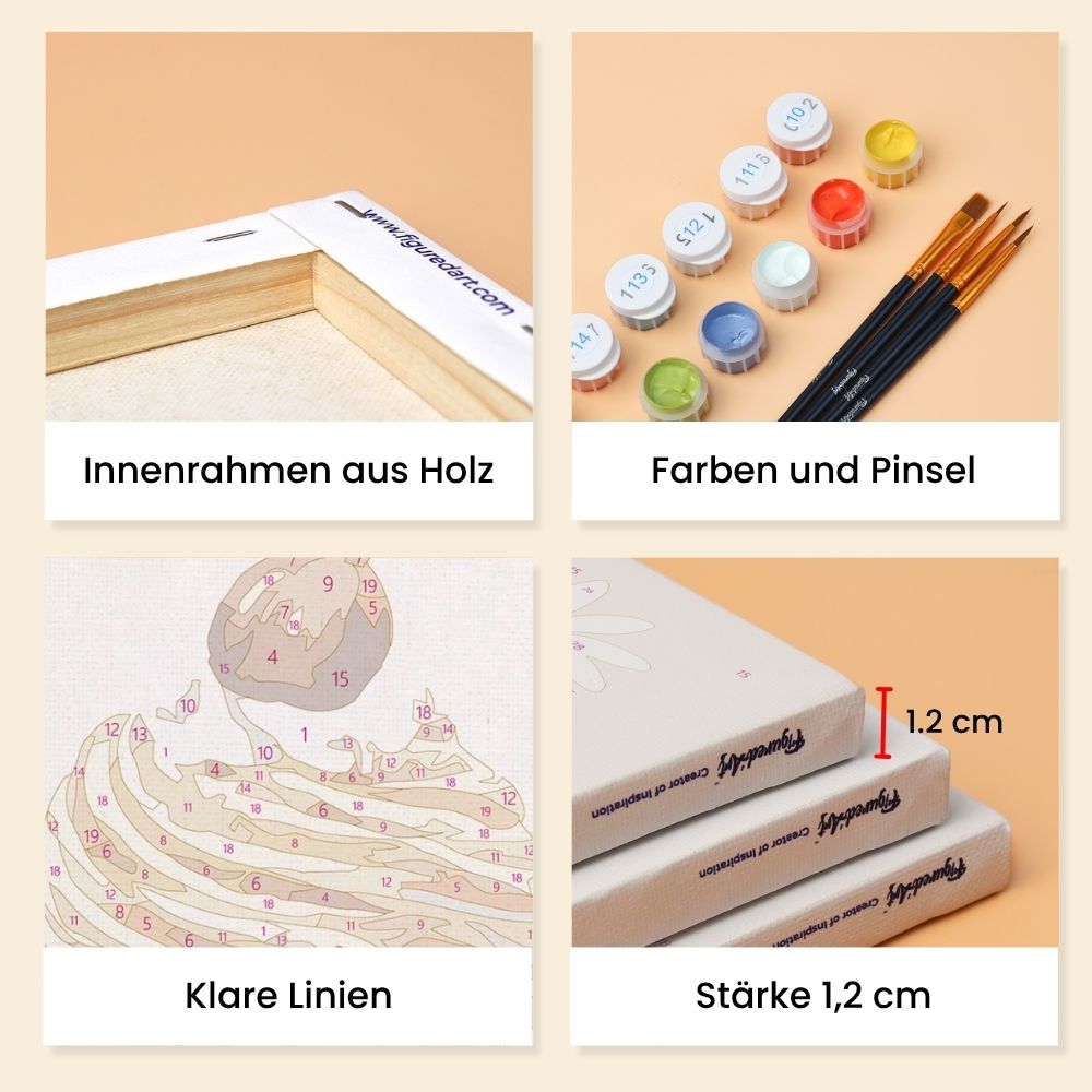 Dank unseren Malen nach Zahlen Sets können Sie ohne Vorkenntnisse ein wahres Kunstwerk erstellen. Wecken Sie den Künstler in Ihnen und bestellen Sie noch heute!