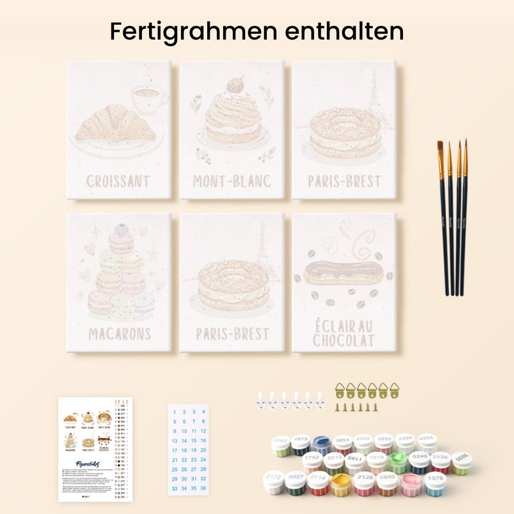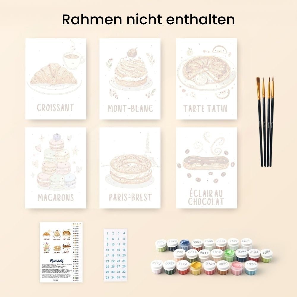 Mini Malen nach Zahlen 15x20 cm (6 Stück) - Französische Backwaren