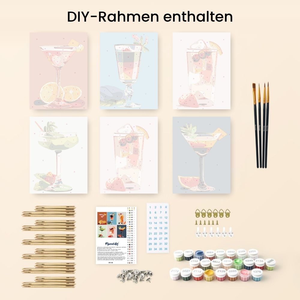 Mini Malen nach Zahlen 15x20 cm (6 Stück) - Lebendige Cocktailkunst