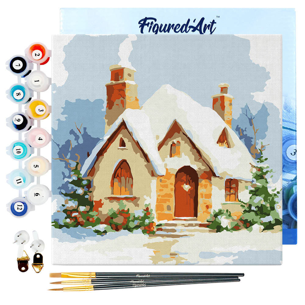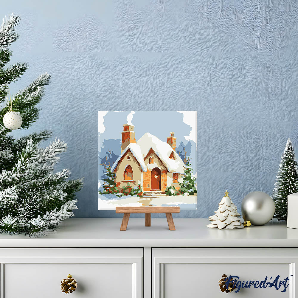 Mini Malen nach Zahlen mit Rahmen - Backsteinhaus im Winter
