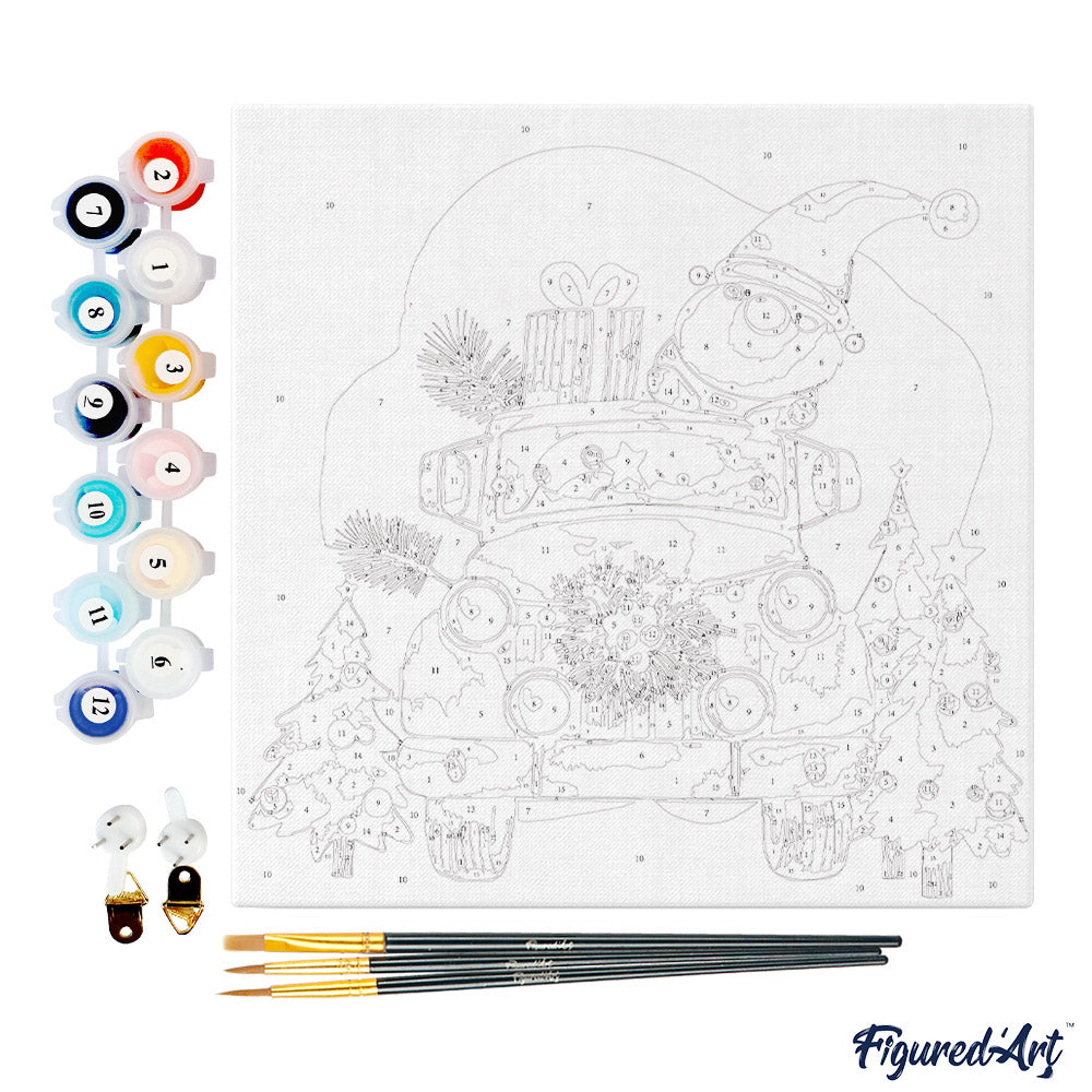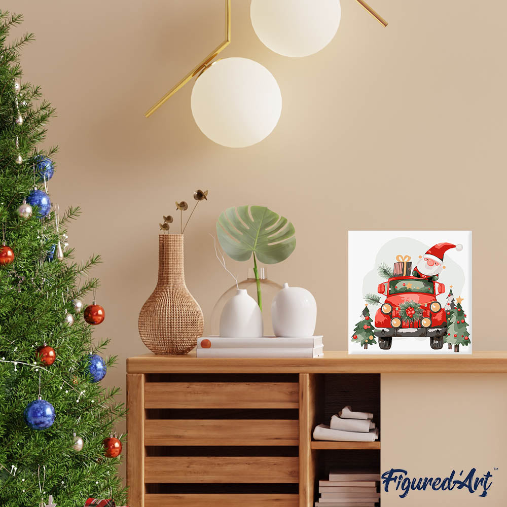 Mini Malen nach Zahlen mit Rahmen - Weihnachtsmann-Lkw
