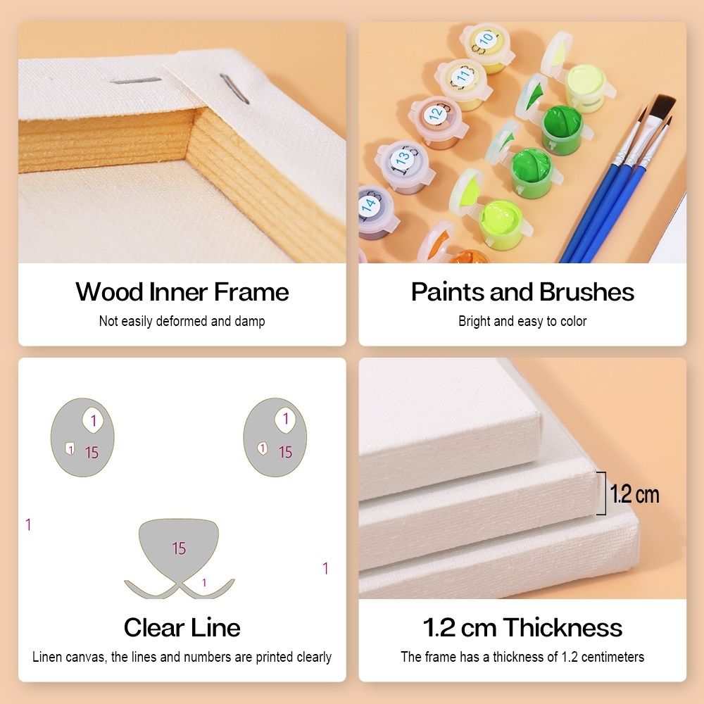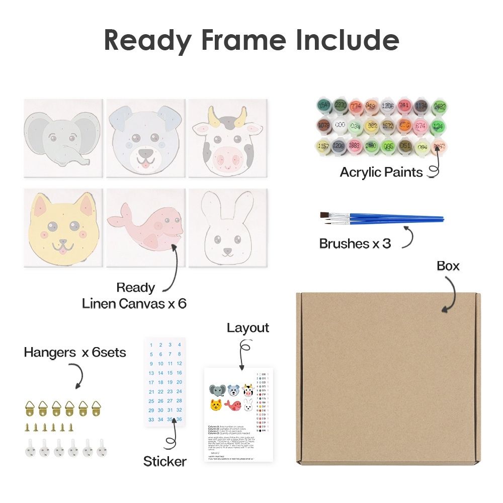 Entdecken Sie die Freude am Malen mit unserem Malen nach Zahlen – 6-Leinwand-Set | Niedliche Tiergesichter. Jedes Set enthält sechs thematische Leinwände, vorgemischte Acrylfarben und alle benötigten Werkzeuge. Folgen Sie der nummerierten Anleitung, um ein entspanntes Hobby zu genießen und wunderschöne Bilder zu gestalten, die Sie stolz ausstellen oder verschenken können.
