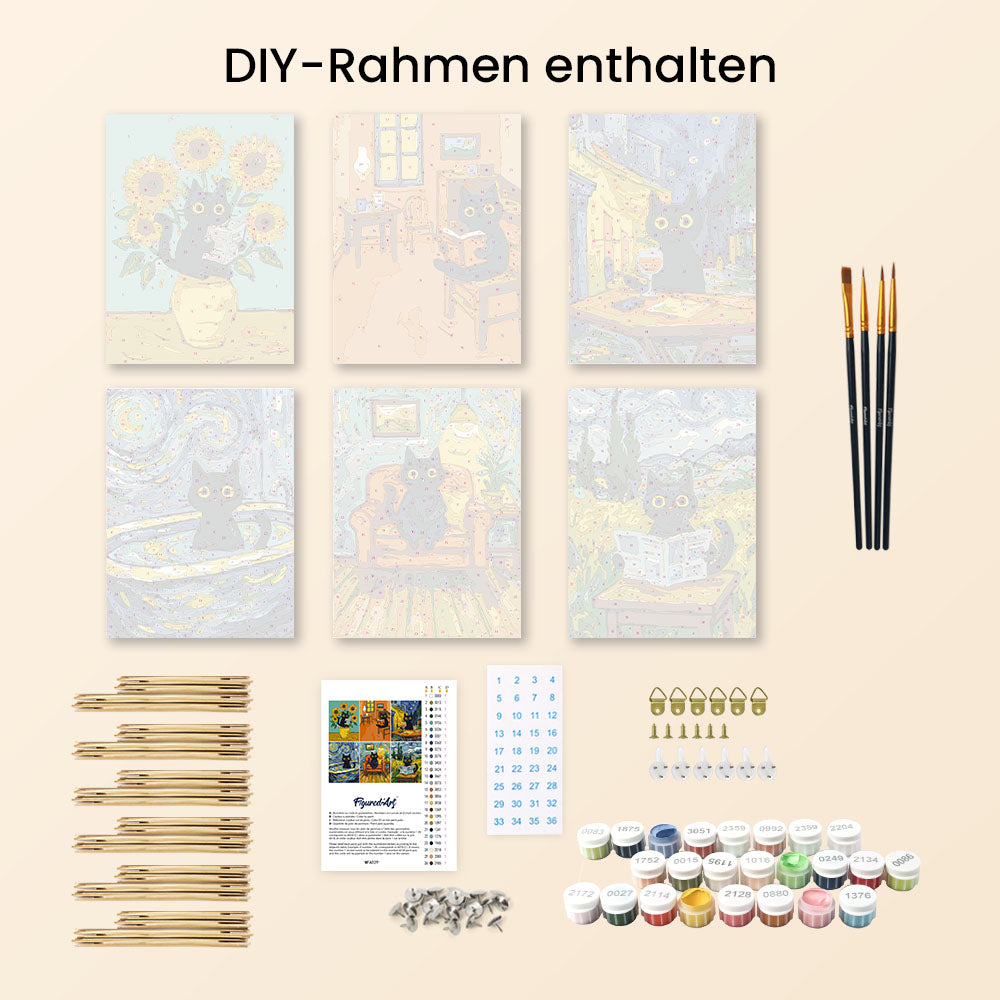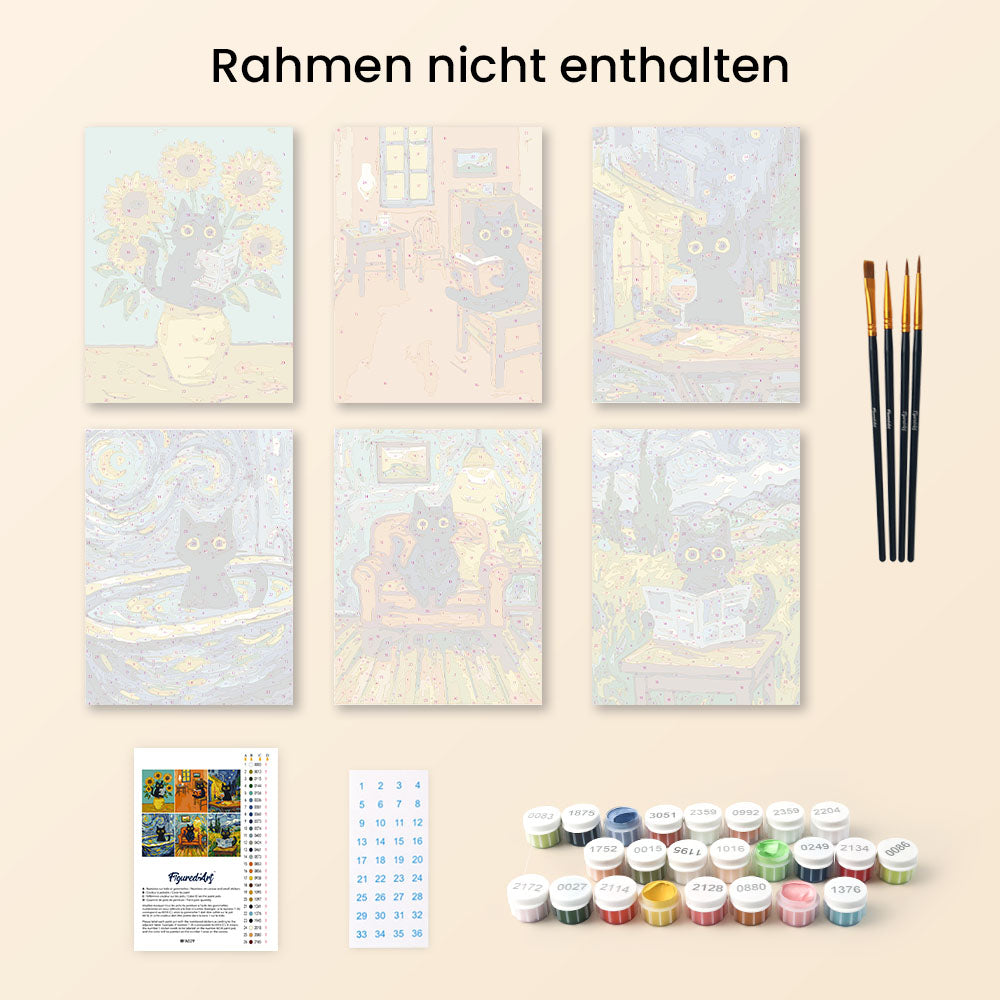Mini Malen nach Zahlen 15x20 cm (6 Stück) - Katze im Van-Gogh-Stil Figured'Art