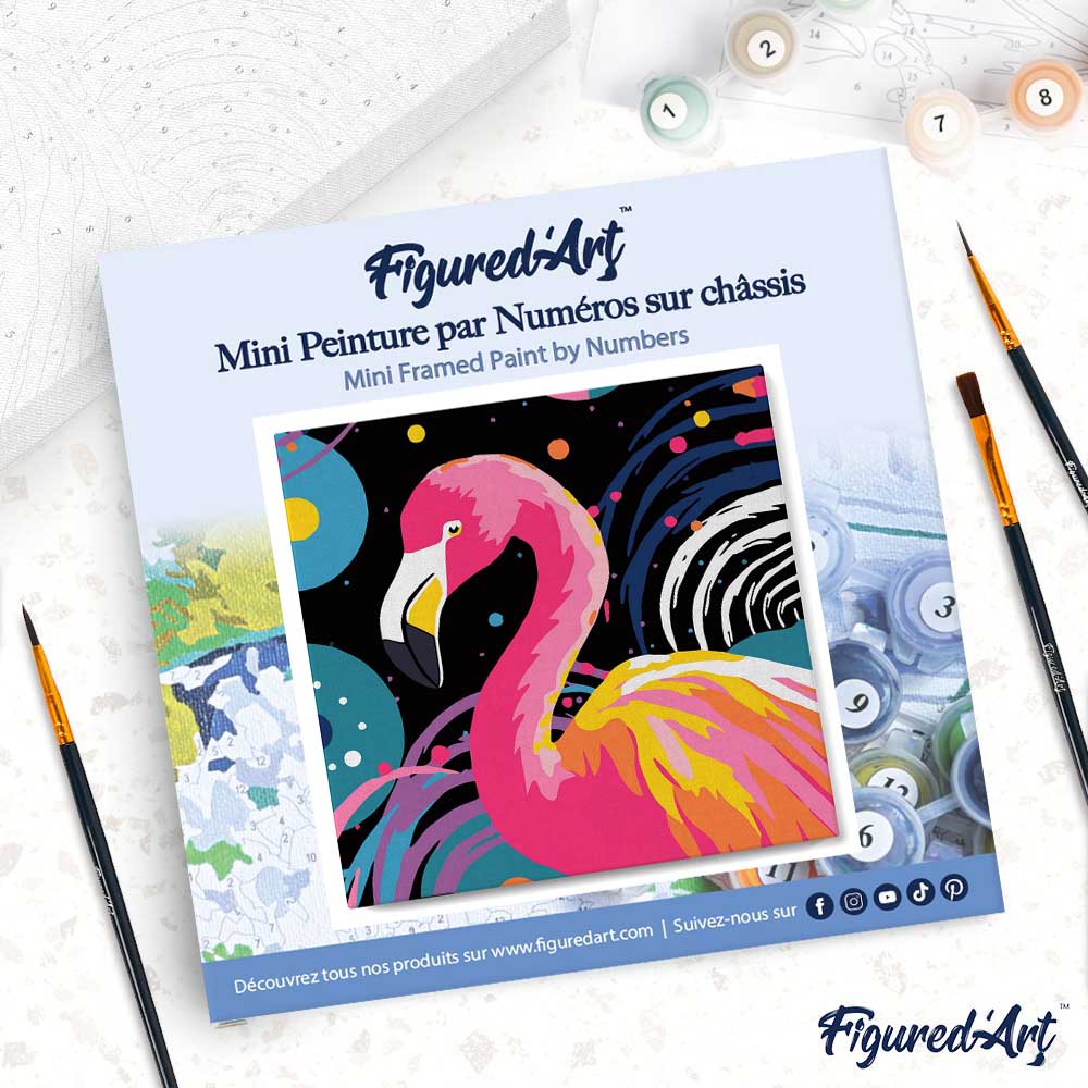 Mini Malen nach Zahlen mit Rahmen - Flamingo Abstrakt Pop Art