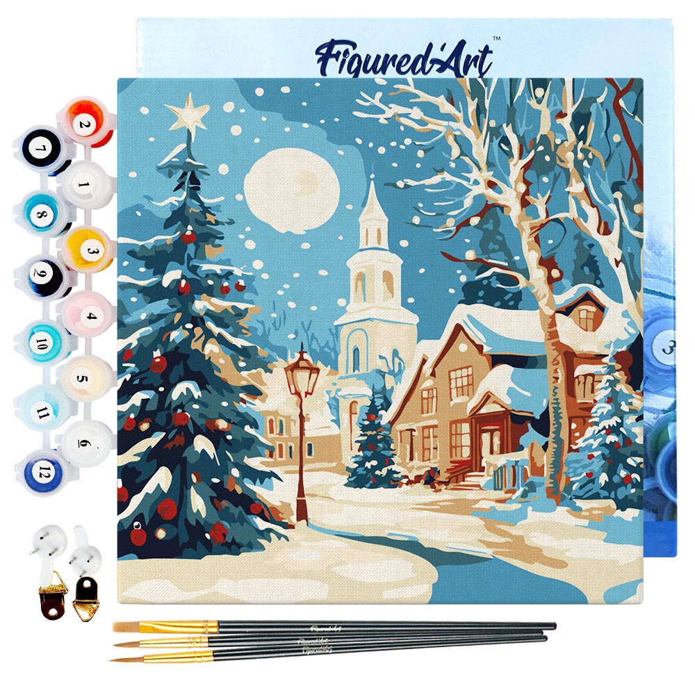 Mini Malen nach Zahlen mit Rahmen - Verschneite Weihnachtsstraße
