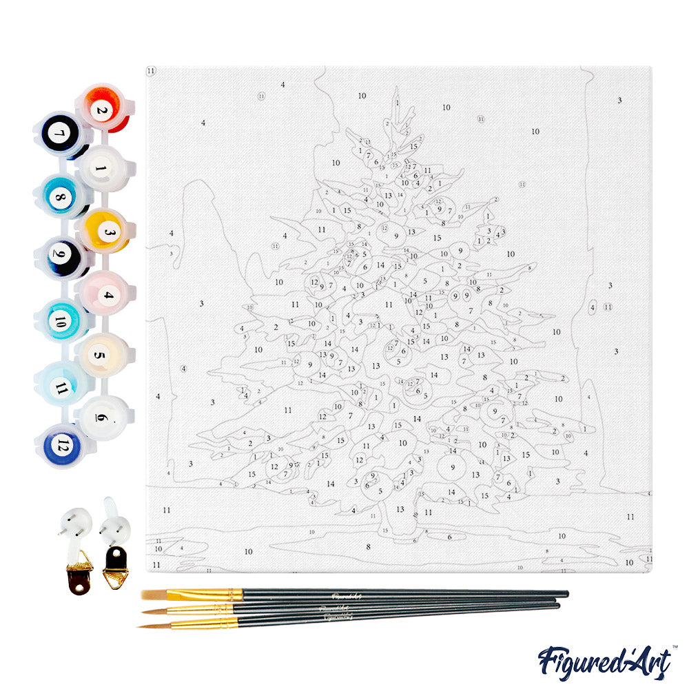 Mini Malen nach Zahlen mit Rahmen - Verschneiter Weihnachtsbaum