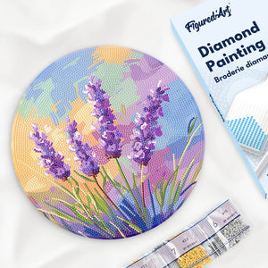 Diamond Painting auf Holzscheibe - Lavendel