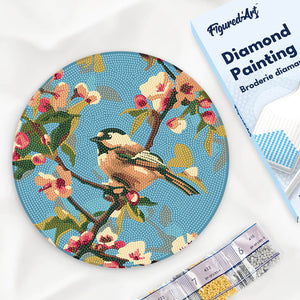 Diamond Painting auf Holzscheibe - Vogel auf einem Ast