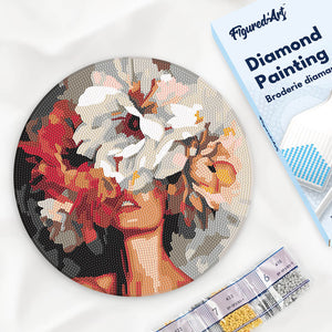 Diamond Painting auf Holzscheibe - Schönheit hinter Blumen