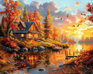 Diamond Painting - Herbstsonnenuntergang bei der Hütte
