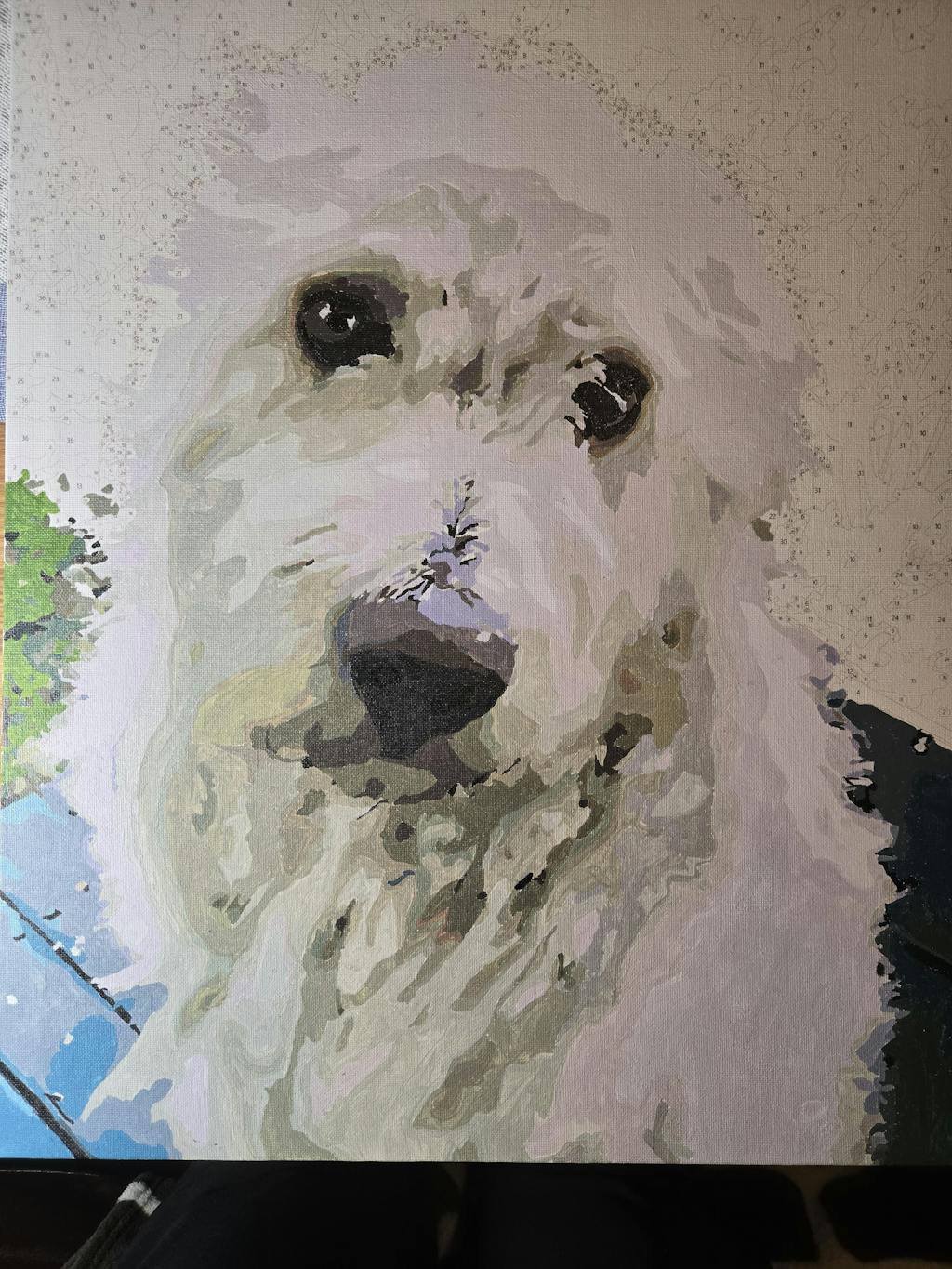 Foto vom Hund geschickt und eine qualitative hochwertige Vorlage zum ausmalen bekommen...ich bin noch nicht ganz fertig aber man sieht schon was....