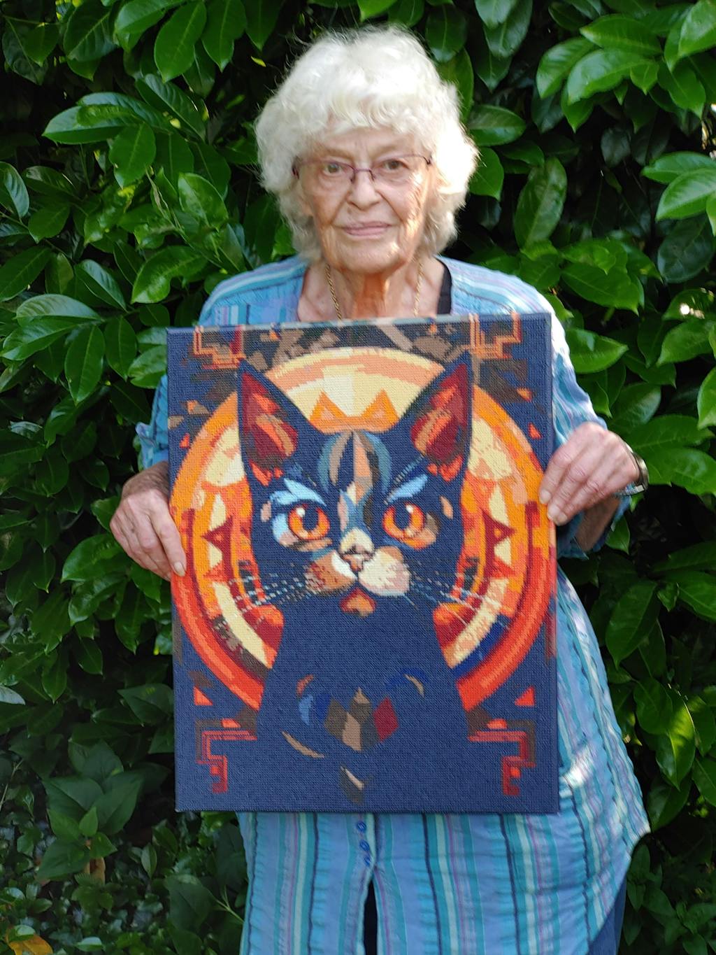 Ein wunderschönes Motiv, das ich für eine Katzenliebhaberin angefertigt habe. Die Arbeit daran hat mir viel Freude gemacht. Mit Diamond Painting habe ich auf meine alten Tage (87) ein schönes Hobby entdeckt. Ich habe schon viele Diamond Paintings angefertigt. Leider ist die Auswahl bei Motiven, die auf Keilrahmen gespannt sind, nicht so groß und viele der angebotenen Motive gefallen mir nicht. Die Bilder im Art Deco Stil sind mal etwas ganz Anderes und gefallen mir sehr. Davon wünsche ich mir noch mehr, aber bitte auf Keilrahmen.