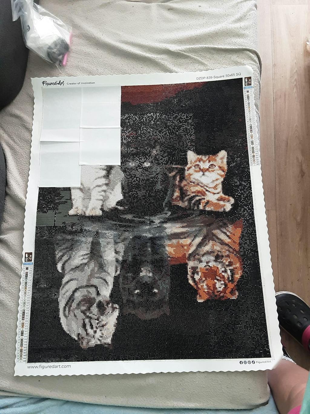 Ich habe mir dieses Bild mit dem Katzen 65x50 und es macht richtigen Spaß das zu machen Ich sitze heute noch dran