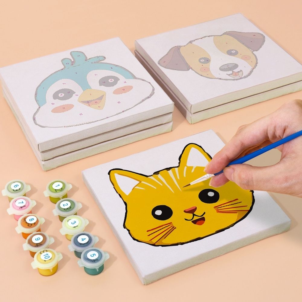 Entdecken Sie die Freude am Malen mit unserem Malen nach Zahlen – 6-Leinwand-Set | Niedliche Tiergesichter 3. Jedes Set enthält sechs thematische Leinwände, vorgemischte Acrylfarben und alle benötigten Werkzeuge. Folgen Sie der nummerierten Anleitung, um ein entspanntes Hobby zu genießen und wunderschöne Bilder zu gestalten, die Sie stolz ausstellen oder verschenken können.